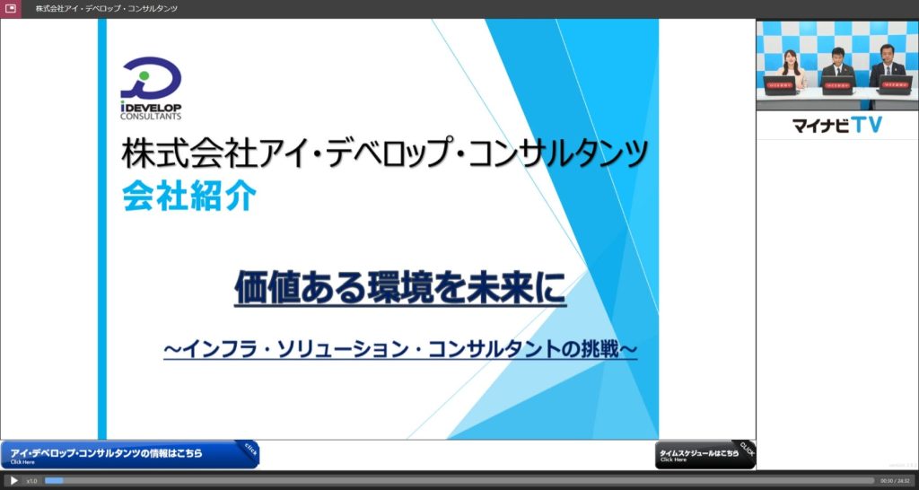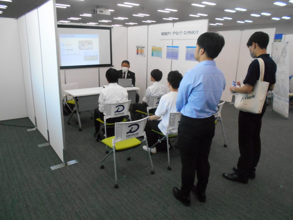 内容につきましては、参加した会社毎にブースを設け会社説明やWeb(マイナビTV)にて各社見どころ紹介や会社案内に出演し学生さんに向けた会社説明を行い、インターンシップへの参加呼びかけを行いました。