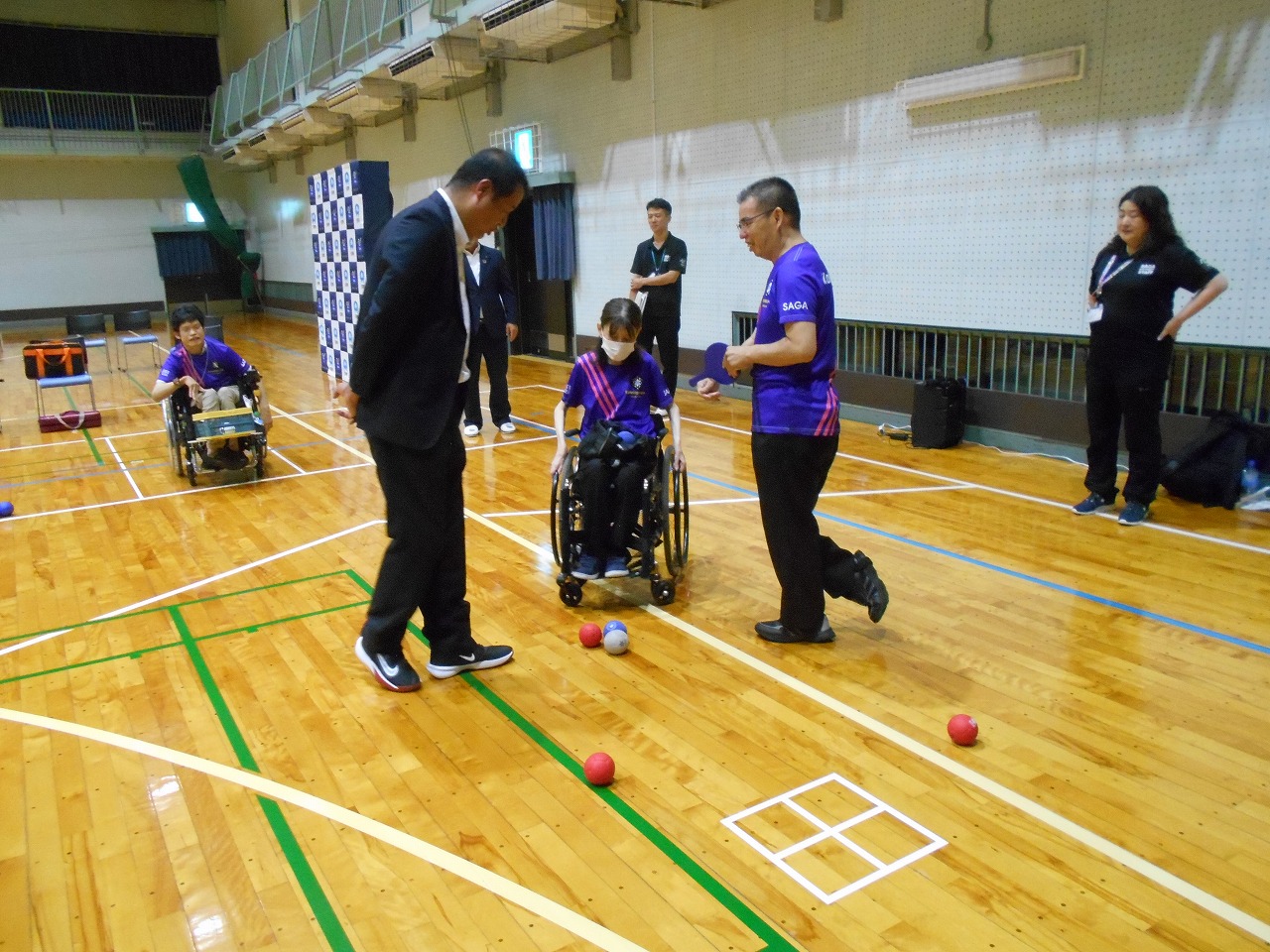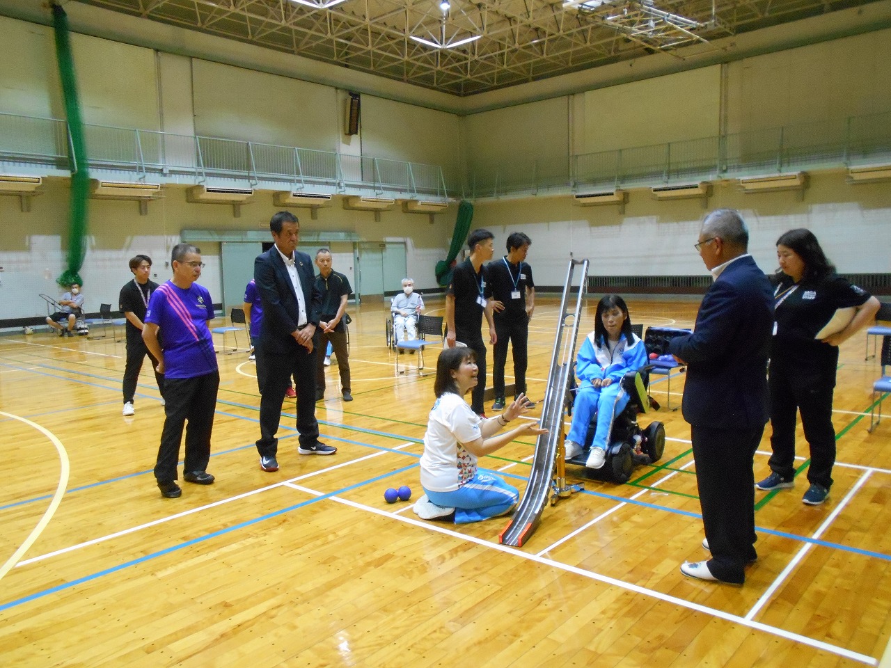贈呈式後は、実際にポッチャを体験させて頂き、見た目以上の難しさと奥深さがありました。